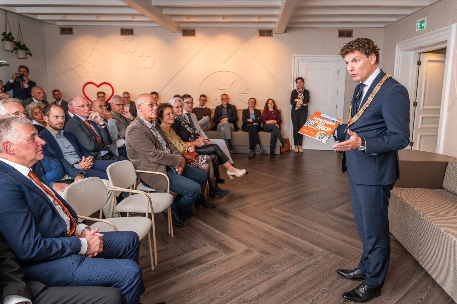 Voorafgaand aan de vergadering werd een jubileummagazine overhandigd aan de burgemeester. Het magazine 'honderd jaar SGP Barneveld', is ook huis aan huis verspreid.
