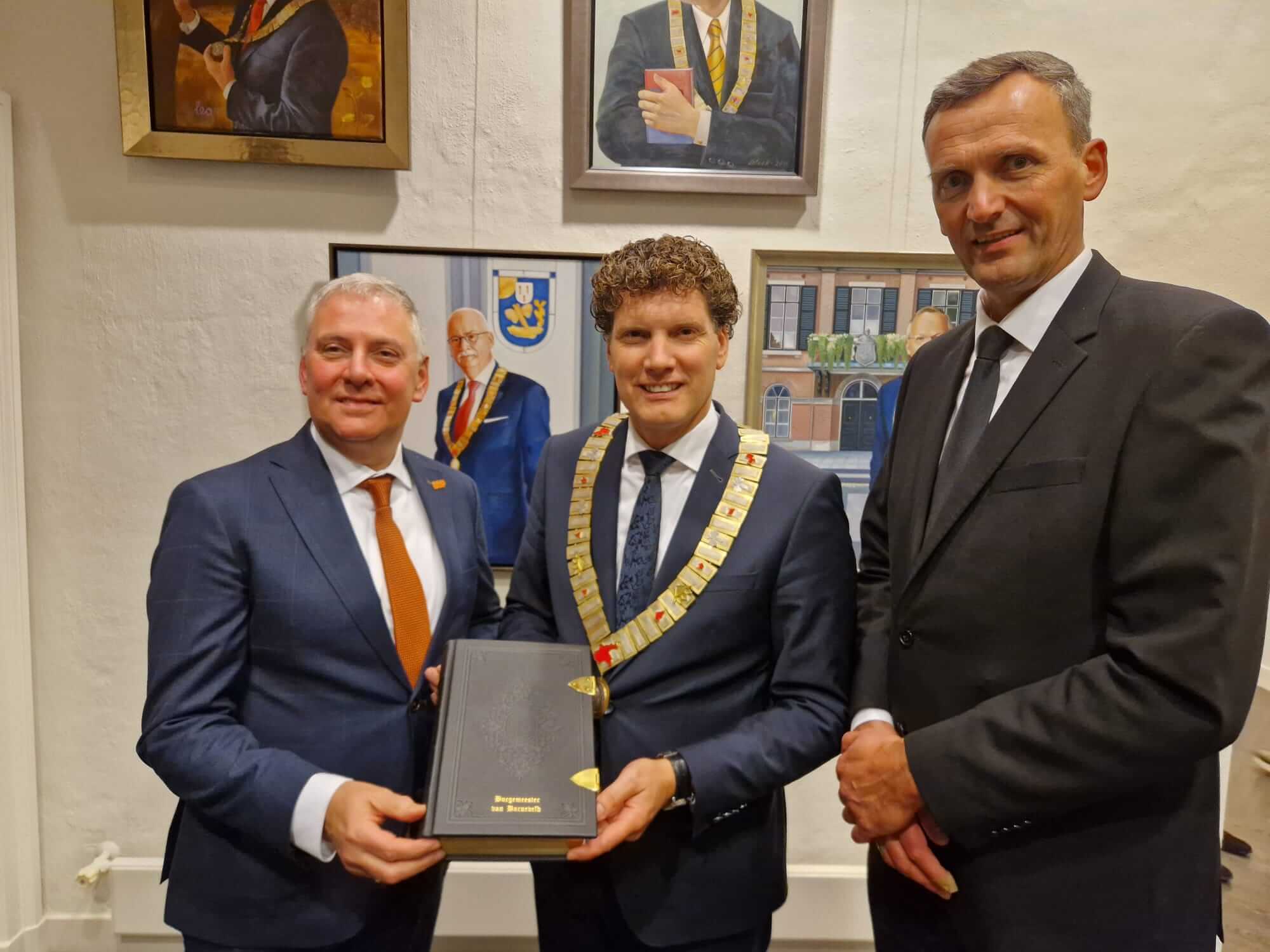 Tijdens de raadsvergadering voerde Jan Top kort het woord en overhandigde hij de gemeente in persoon van de burgemeester een Bijbel die een plaats mag krijgen op de werkkamer van de burgemeester.